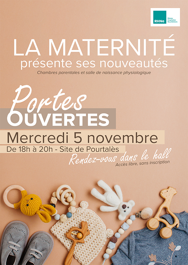 Envie de découvrir ces nouveautés de plus près? La maternité du RHNe ouvrira ses portes au public le mercredi 5 novembre, de 18h à 20h, lors d’une soirée spéciale sans inscription (orientation depuis le hall du site de Pourtalès à Neuchâtel).